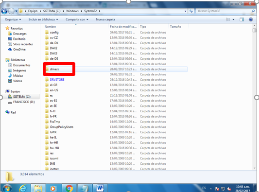 Después entra a la carpeta system32